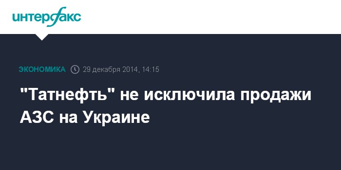 Москва. 29 декабря. INTERFAX.RU – "Татнефть" не исключает продажи сети АЗС на Украине, сообщил генеральный директор компании Наиль Маганов на пресс-конференции в понедельник. "На сегодняшний день эти заправки работают, продажи растут", - отметил он.