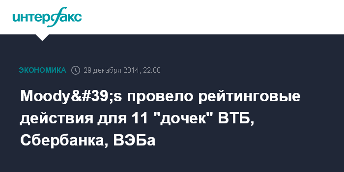 Moody's провело рейтинговые действия для 11 "дочек" ВТБ, Сбербанка, ВЭБа