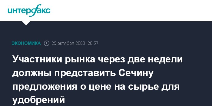 Участники рынка через две недели должны представить Сечину предложения о цене на сырье для удобрений