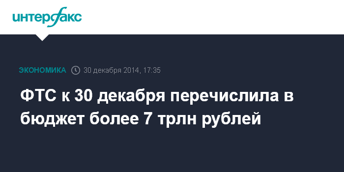 ФТС к 30 декабря перечислила в бюджет более 7 трлн рублей