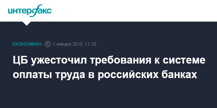 Москва. 1 января. INTERFAX.RU - ЦБ РФ с 1 января 2015 года ужесточает требования к системе оплаты труда в российских банках.