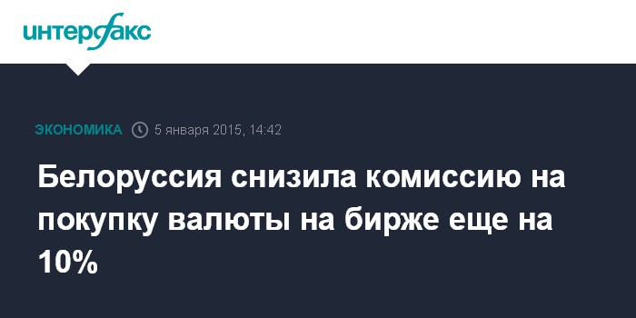 В свою очередь в Национальном банке в Белоруссии агентству "Интерфакс" сообщили, что с 6 января размер комиссионного сбора при покупке валюты населением также снижается до 10% с 20%, установленных с 30 декабря 2014 года.