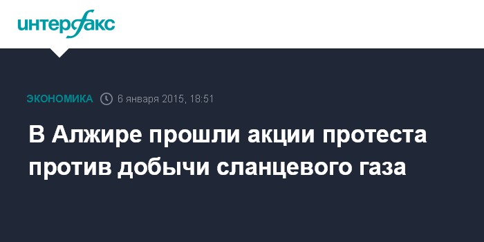 Москва. 6 января. INTERFAX.RU - В Алжире прошли акции протеста против разработки месторождений сланцевого газа в стране, сообщает BBC.