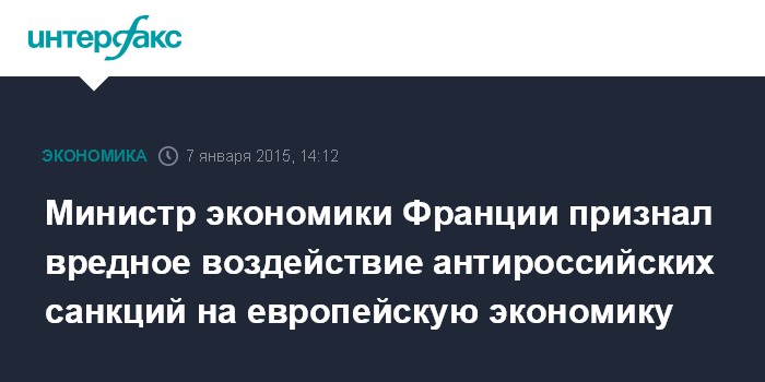 Москва. 7 января. INTERFAX.RU - Санкции, введенные Евросоюзом в отношении России, сказываются на европейской экономике, заявил в интервью AP министр экономики Франции Эмманюэль Макрон.