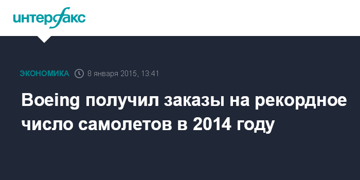 Москва. 8 января. INTERFAX.RU - Американский концерн Boeing Co., крупнейший мировой производитель авиационной, космической и военной техники, получил заказы на рекордное число коммерческих самолетов в 2014 году, говорится в сообщении компании.