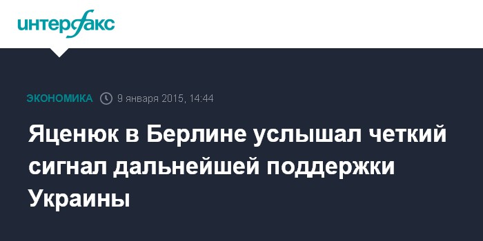 Москва. 9 января. INTERFAX.RU - Европейский Союз, и в частности Германия, дали четкий сигнал Украине о дальнейшей поддержке, заявил премьер-министр Украины Арсений Яценюк.