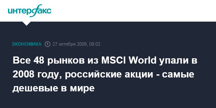 Все 48 рынков из MSCI World упали в 2008 году, российские акции - самые дешевые в мире