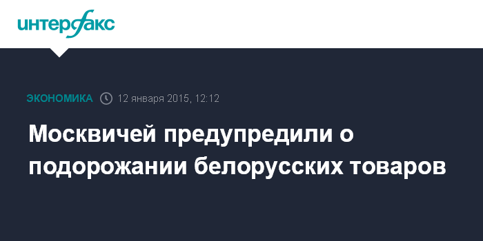 Москва. 12 января. INTERFAX.RU - Московские торговые предприятия предупреждают потребителей о грядущем повышении цен на белорусские товары из-за перехода на расчеты за поставляемую продукцию в долларах США и ряда других факторов.