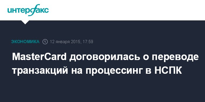 Москва. 12 января. INTERFAX.RU - Национальная система платежных карт (НСПК) заключила с платежной системой MasterCard договор о переводе процессинга последней в НСПК, говорится в сообщении ЦБ РФ.