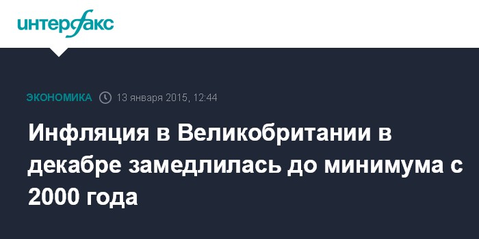 Москва. 13 января. INTERFAX.RU – Потребительские цены в Великобритании в декабре 2014 года выросли на 0,5% в годовом выражении - это минимальная инфляция с мая 2000 года, свидетельствуют данные Национального статистического управления страны.