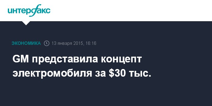 Москва. 13 января. INTERFAX.RU - Американский автоконцерн General Motors на автосалоне в Детройте представил концепт нового бюджетного автомобиля с полностью электрическим приводом, сообщает агентство Bloomberg.