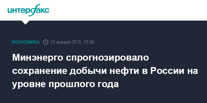 Москва. 15 января. INTERFAX.RU - Минэнерго ожидает сохранения добычи нефти в России в 2015 году на уровне 2014 года - 525-526 млн тонн, сообщил директор департамента добычи и транспортировки нефти и газа Минэнерго Александр Гладков, выступая на Гайдаровском форуме.