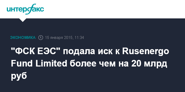 "ФСК ЕЭС" подала иск к Rusenergo Fund Limited более чем на 20 млрд руб