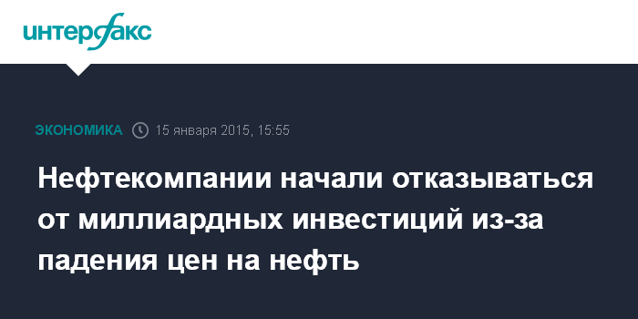 Нефтекомпании начали отказываться от миллиардных инвестиций из-за падения цен на нефть