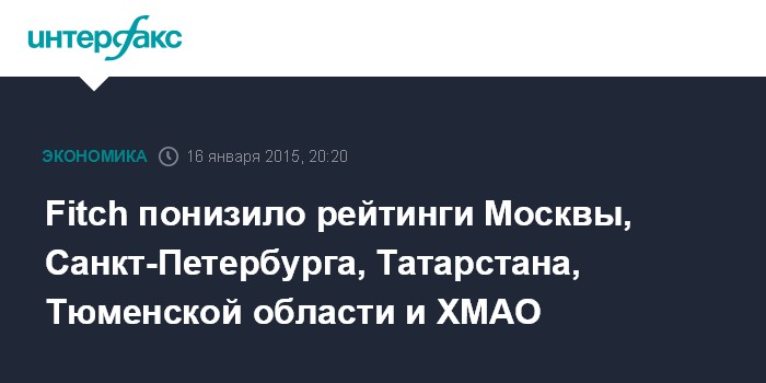 Fitch понизило рейтинги Москвы, Санкт-Петербурга, Татарстана, Тюменской области и ХМАО