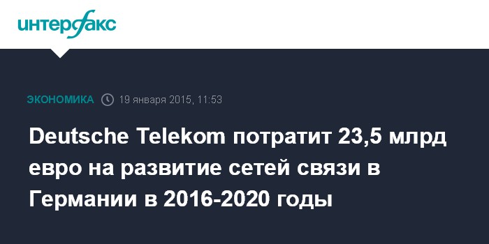 Москва. 19 января. INTERFAX.RU - Крупнейшая телекоммуникационная компания Европы Deutsche Telekom планирует увеличить расходы на развитие сетей связи в Германии, чтобы сохранить свое лидерство на рынке. Оператор намерен инвестировать 23,5 млрд евро в сегменты проводной и мобильной связи, а также развитие цифровой инфраструктуры с 2016 по 2020 годы, заявил главный исполнительный директор Deutsche Telekom Тим Хеттгес в интервью агентству Bloomberg.