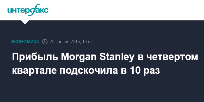 Москва. 20 января. INTERFAX.RU – Чистая прибыль банка Morgan Stanley, обладателя крупнейшего брокерского бизнеса в мире, подскочила более чем в десять раз в четвертом квартале 2014 года в годовом выражении, но скорректированный показатель не оправдал прогнозы рынка.