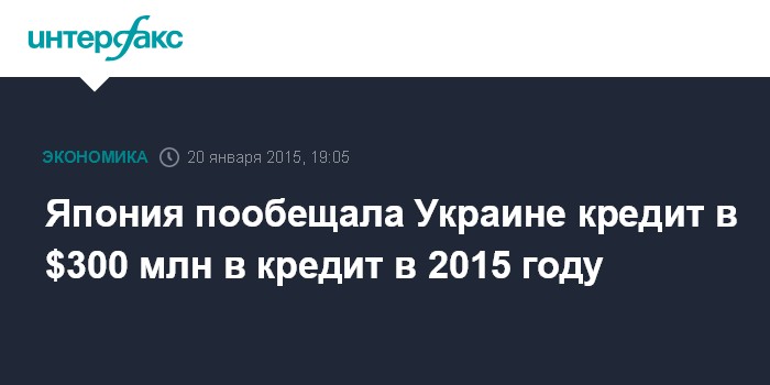 Москва. 20 января. INTERFAX.RU - Япония в 2015 году в рамках программы международной помощи предоставит Украине на нужды бюджета кредит $300 млн, а также грант $16,6 млн на восстановление социальных объектов и инфраструктуры на востоке страны, сообщил посол Японии на Украине Шигеки Суми.