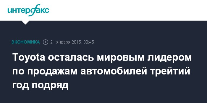 Москва. 21 января. INTERFAX.RU – Японской автомобилестроительной группе Toyota Motor удалось третий год подряд сохранить первенство по объему продаж автомобилей на мировых рынках, несмотря на усиление конкуренции, сообщает агентство Bloomberg.