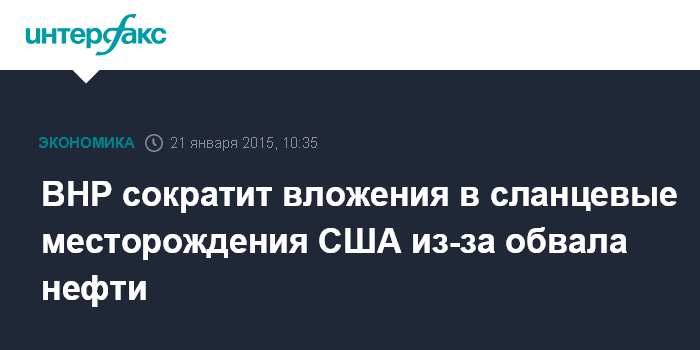 Москва. 21 января. INTERFAX.RU – Англо-австралийская BHP Billiton, крупнейший добывающий концерн мира, сокращает добычу нефти на сланцевых месторождениях в США и уменьшит число буровых установок в эксплуатации примерно на 40% на фоне обвала цен на нефть. Это позволит компании повысить эффективность работы, отмечается в сообщении. Программа инвестиций в сланцевые проекты остается на пересмотре.