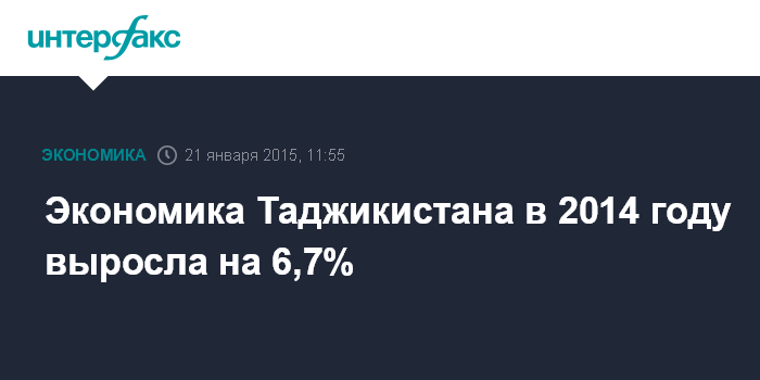 Экономика Таджикистана в 2014 году выросла на 6,7%