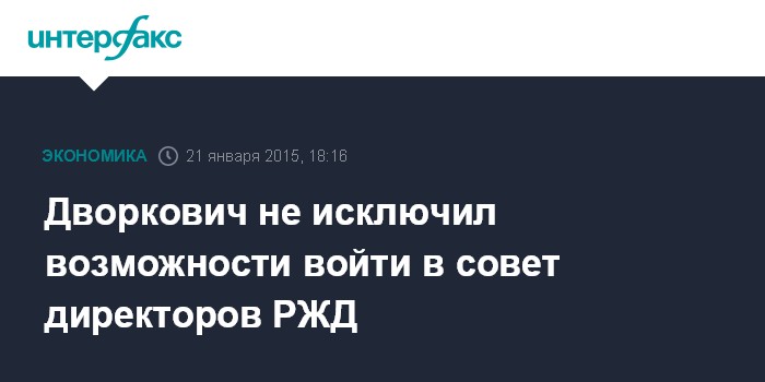 Москва. 21 января. INTERFAX.RU - Вице-премьер Аркадий Дворкович, курирующий транспортную отрасль в правительстве, может войти в совет директоров ОАО "РЖД".