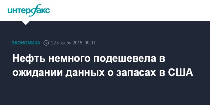 Москва. 22 января. INTERFAX.RU - Нефть слабо дешевеет в четверг в ожидании данных о запасах энергоносителей в США, которые, как ожидается, станут очередным подтверждением избытка нефти на мировом рынке, сообщает агентство Bloomberg.