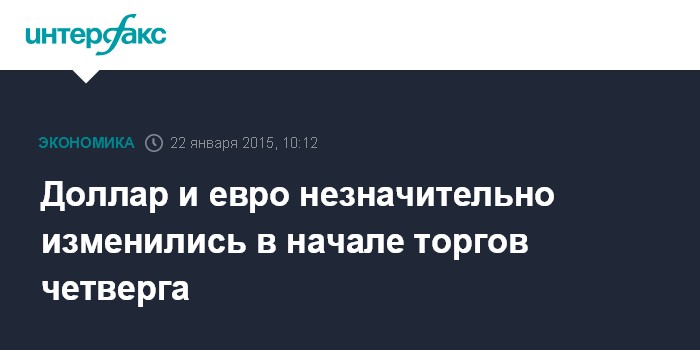 Москва. 22 января. INTERFAX.RU – Доллар и евро незначительно изменились на Московской бирже в четверг при открытии торгов, рубль сохранил предыдущие уровни, продолжая консолидироваться в условиях незначительных изменений цен на рынке нефти.