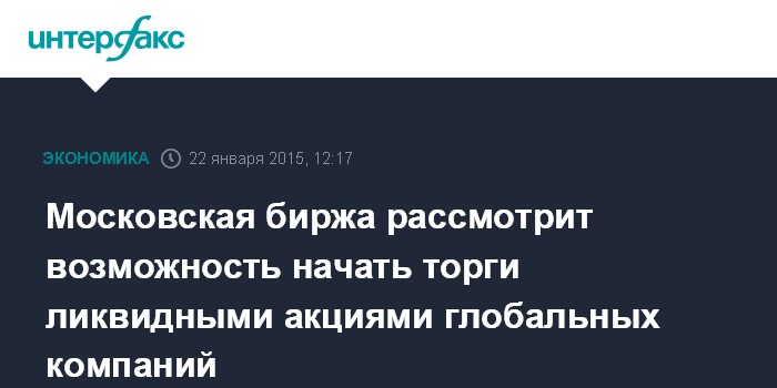 Москва. 22 января. INTERFAX.RU – Московская биржа рассматривает возможность начать торги наиболее ликвидными акциями глобальных компаний, в том числе американских, сообщили "Интерфаксу" несколько источников на финансовом рынке.