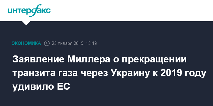 Заявление Миллера о прекращении транзита газа через Украину к 2019 году удивило ЕС