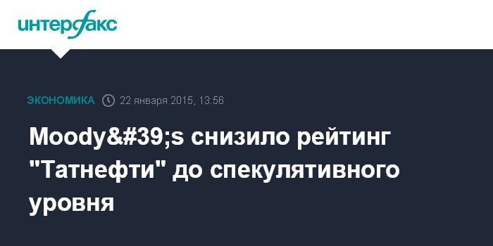 Москва. 22 января. INTERFAX.RU – Международное рейтинговое агентство Moody's Investors Service в четверг понизило рейтинг "Татнефти" до спекулятивного уровня "Ba1" с "Baa3", сообщается в пресс-релизе агентства.