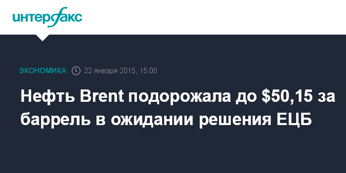 Нефть Brent подорожала до $50,15 за баррель в ожидании решения ЕЦБ