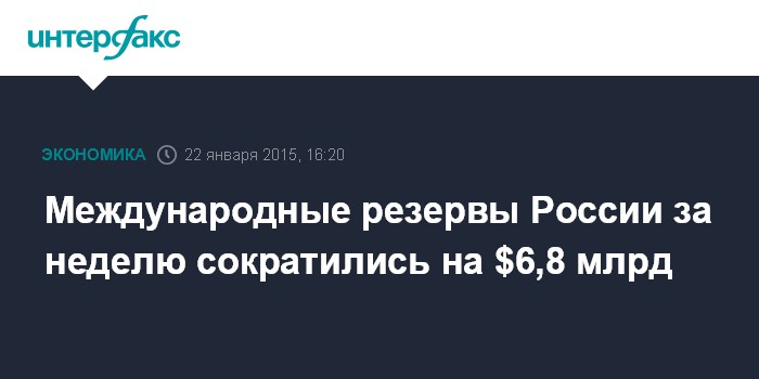 Москва. 22 января. INTERFAX.RU – Международные резервы России на 16 января составили $379,4 млрд, сообщил Банк России. На 9 января международные резервы равнялась $386,2 млрд. Таким образом, за неделю они уменьшились на $6,8 млрд.