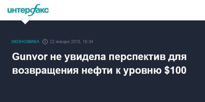 Москва. 22 января. INTERFAX.RU – Стоимость нефти не вернется на уровень $100 за баррель, когда цены снова начнут расти, считает глава службы исследований и анализа рынков сырьевого трейдера Gunvor Group Дэвид Файф, сообщает агентство Bloomberg.