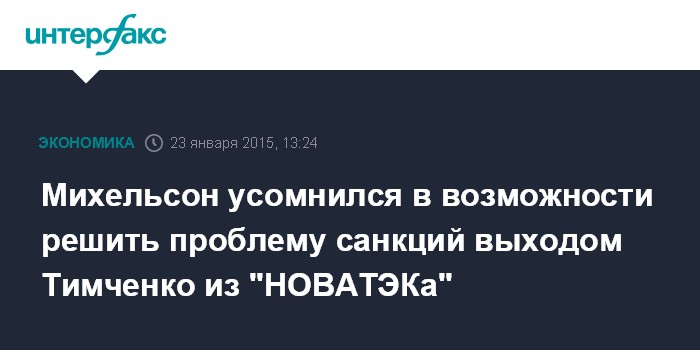 Москва. 23 января. INTERFAX.RU – Выход Геннадия Тимченко из состава акционеров "НОВАТЭКа" не решит проблему финансовых санкций, наложенных Минфином США на компанию, считает глава и крупнейший акционер "НОВАТЭКа" Леонид Михельсон.