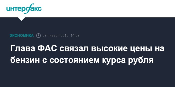 Москва. 23 января. INTERFAX.RU - Существенному снижению цен на бензин препятствует падение курса рубля, заявил руководитель Федеральной антимонопольной службы (ФАС) России Игорь Артемьев в ходе встречи в премьер-министром Дмитрием Медведевым в пятницу.