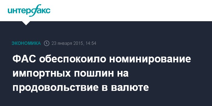 ФАС обеспокоило номинирование импортных пошлин на продовольствие в валюте