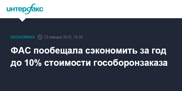 ФАС пообещала сэкономить за год до 10% стоимости гособоронзаказа