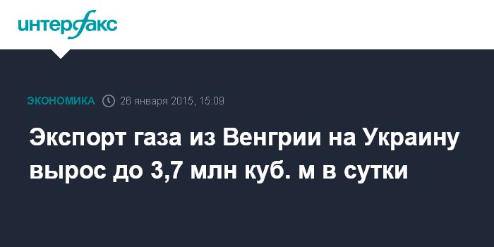 Экспорт газа из Венгрии на Украину вырос до 3,7 млн куб. м в сутки
