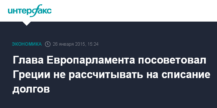 Глава Европарламента посоветовал Греции не рассчитывать на списание долгов