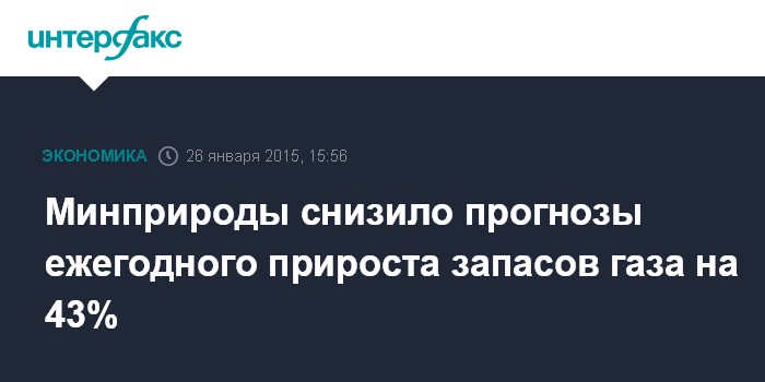 Москва. 26 января. INTERFAX.RU – Минприроды России резко снизило прогнозы ежегодного прироста запасов нефти и газа в России до 2020 года, следует из проекта обновленной Программы воспроизводства и использования природных ресурсов, опубликованной на сайте раскрытия.