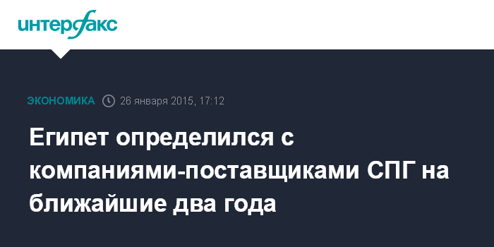 Ранее Каир заключил соглашения об импорте 6 партий СПГ (танкеров СПГ - ИФ) с апреля по сентябрь с алжирской Sonatrach, а также 35 партий СПГ в 2015-2020 годах с российским "Газпромом".