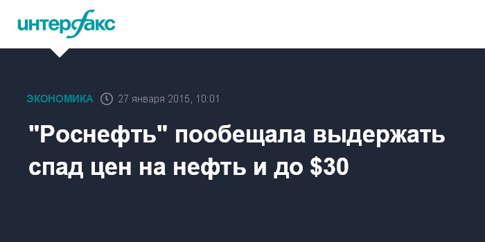"Роснефть" пообещала выдержать спад цен на нефть и до $30
