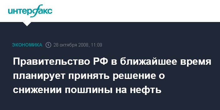 Правительство РФ в ближайшее время планирует принять решение о снижении пошлины на нефть