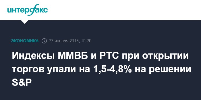 Индексы ММВБ и РТС при открытии торгов упали на 1,5-4,8% на решении S&P