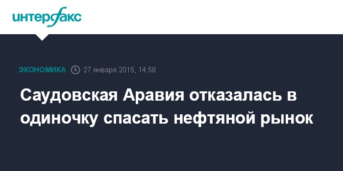 Москва. 27 января. INTERFAX.RU – Саудовская Аравия не намерена в одиночку регулировать баланс на нефтяном рынке, даже если котировки станут "слишком низкими для всех", заявил глава нефтедобывающей госкорпорации Saudi Arabian Oil (Aramco) Халид аль-Фалих.