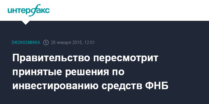 Правительство пересмотрит принятые решения по инвестированию средств ФНБ