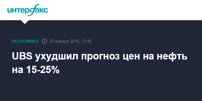 Москва. 28 января. INTERFAX.RU – Аналитики UBS ухудшили прогноз цен на нефть марок Brent и WTI на 2015-2016 годы на 15-25%, сообщает агентство Bloomberg.