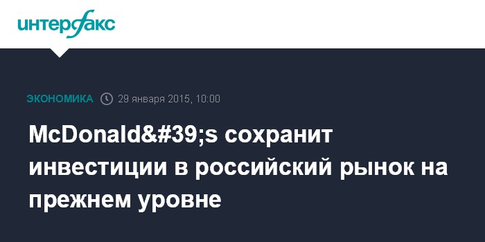 McDonald's сохранит инвестиции в российский рынок на прежнем уровне