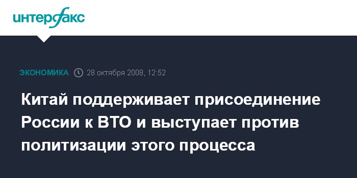 Китай поддерживает присоединение России к ВТО и выступает против политизации этого процесса